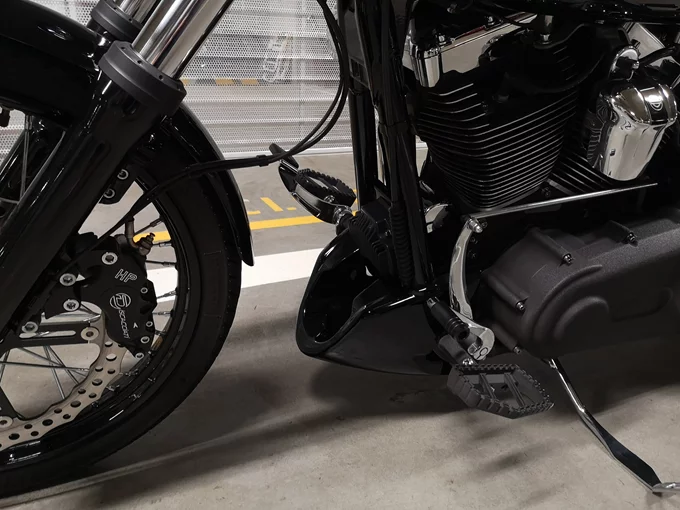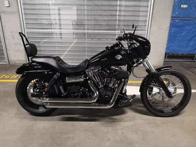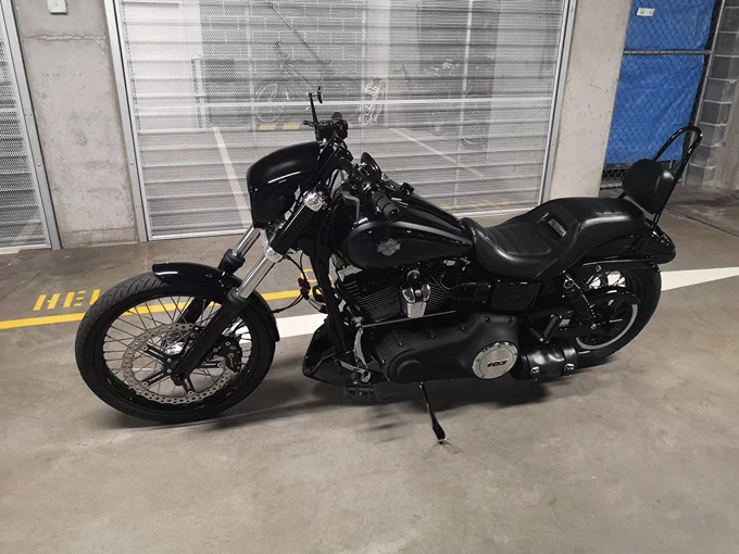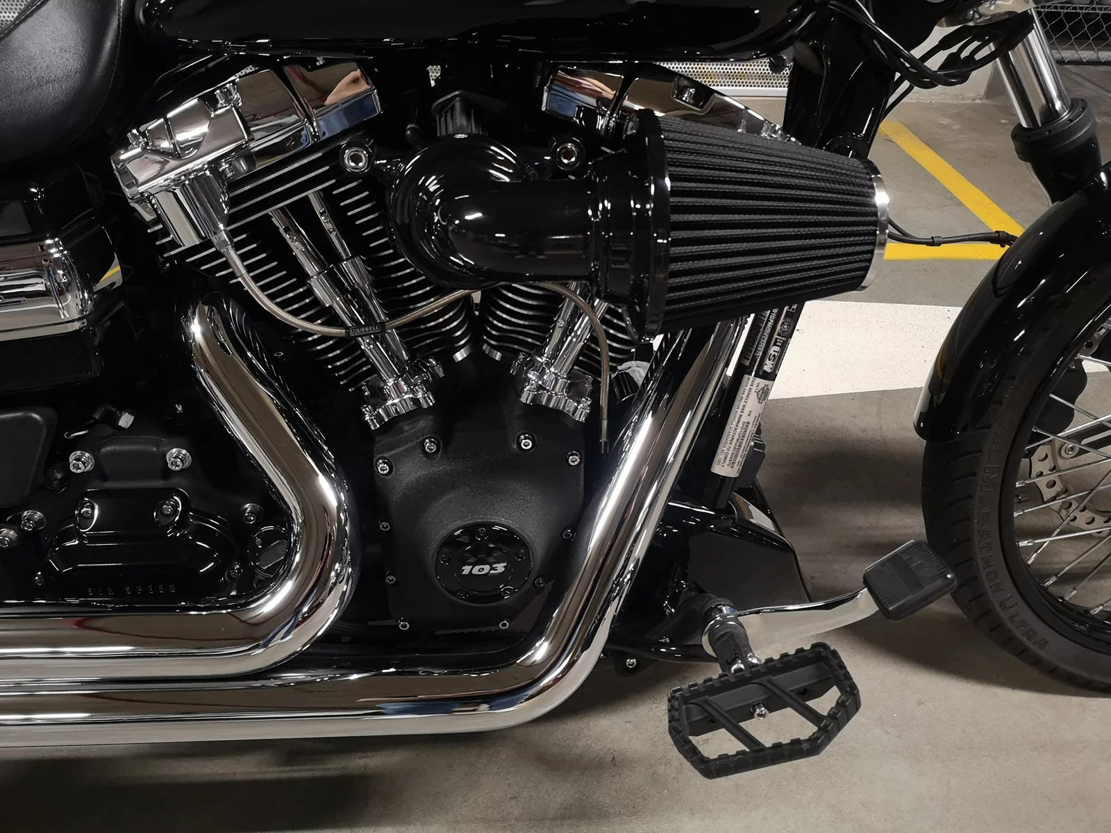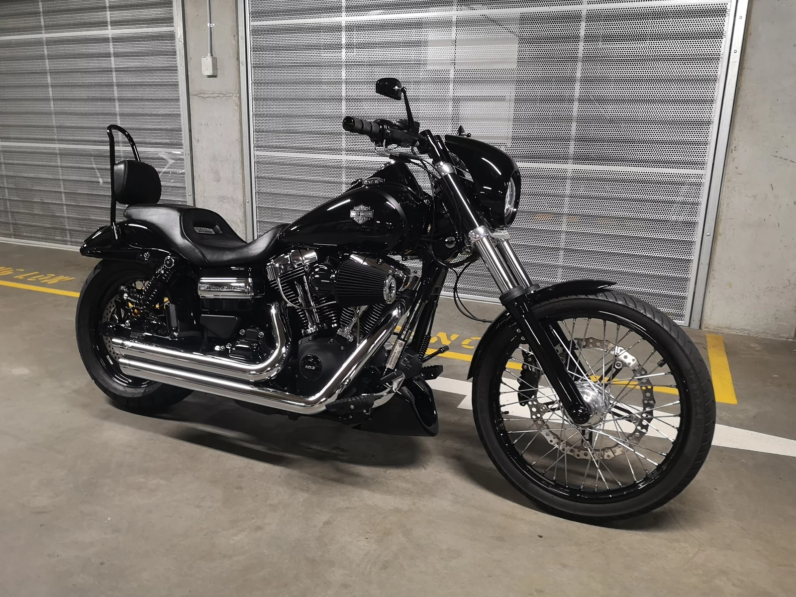 Inspired by the SOA series, I bought it in 2020 with only 4,000 km in perfect condition. Full stock version. Modifications started with the exhaust, then the reduction of old-looking chrome elements, and then bolder and bolder replacement of subsequent parts to make the whole look more and more modern, with the addition of features of the V-rod and CVO Breakout models and maintaining the iconic Dyna character. Currently, most of the elements visible from the outside are changed, including most of the bolts. And it's not over yet.